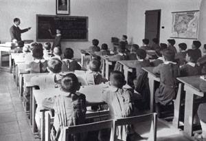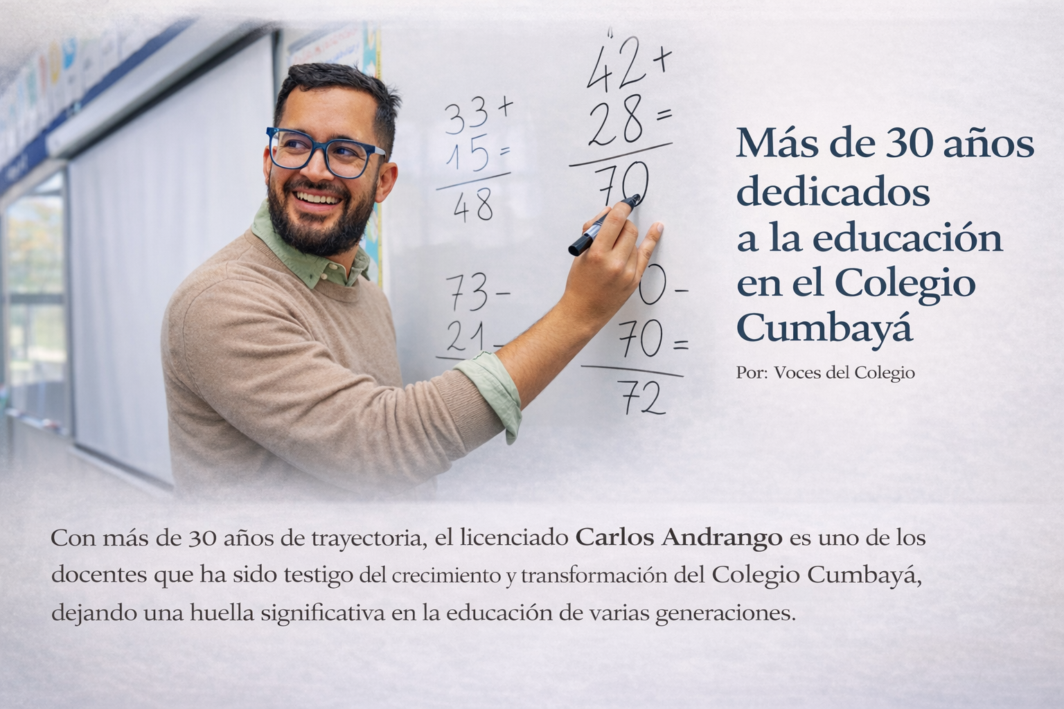 Happy teacher explaining mathematics at whiteboard in classroom. Portrait of smiling mathematics tutor explaining addition concept to children in classroom. Successful teacher standing in front of whiteboard with crossed arms after explaining addition to students.